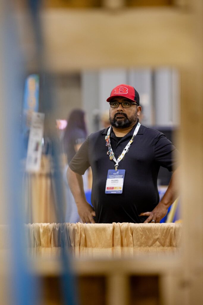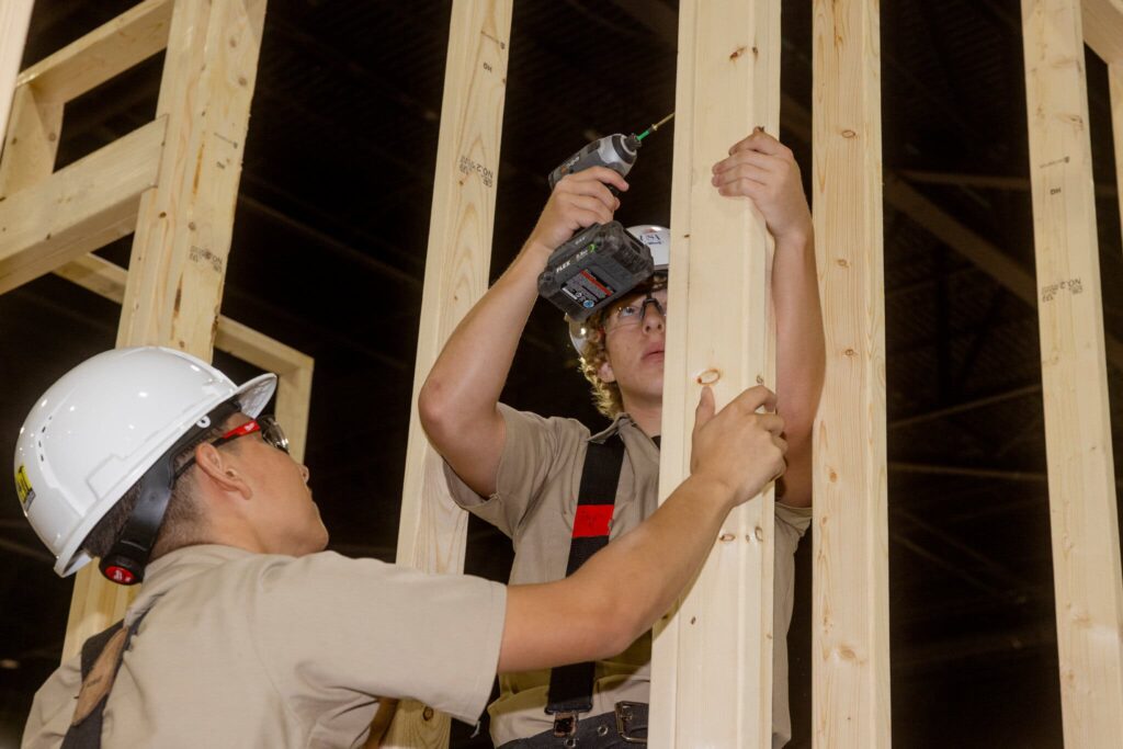 The plumber, the mason, the electrician and the carpenter arrived a full hour early to collect their blueprints. They had two days in June to build an eight-foot by 10-foot tiny home inside the convention center in downtown Atlanta. They knew little else about their assignment, but they were anxious to get started defending their title at the SkillsUSA Championships. The 2024 team had hammered their way to victory erecting a tiny home with two stories, exterior steps with a railing, and a three-pitched roof.