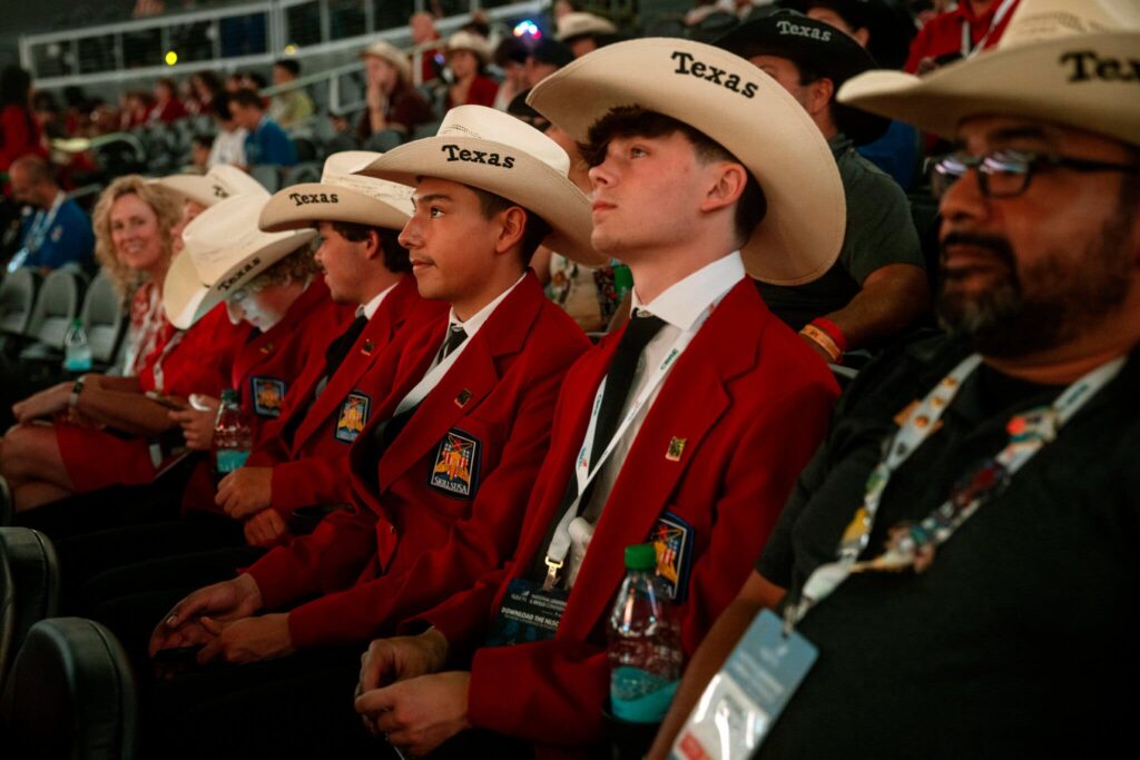 First place was the only place that mattered to the Belton team, who wore red blazers with the SkillsUSA logo and 10-gallon hats to the awards ceremony. They had made a pact to only celebrate if they were No. 1. As they waited to hear the finalists, their mood shifted from glee to dread. “All because of the stairs we’re not going to go up there,” Joseph said to Jack.