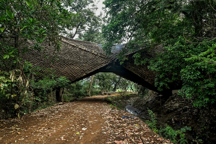 When the thatch was finally laid, they incorporated a mud plaster layer and waterproofing to ensure that pests and rodents wouldn’t tear through it. He said he drew inspiration from the pangolin — a scaly mammal — for the final textured finish, which resembles coconut husks.