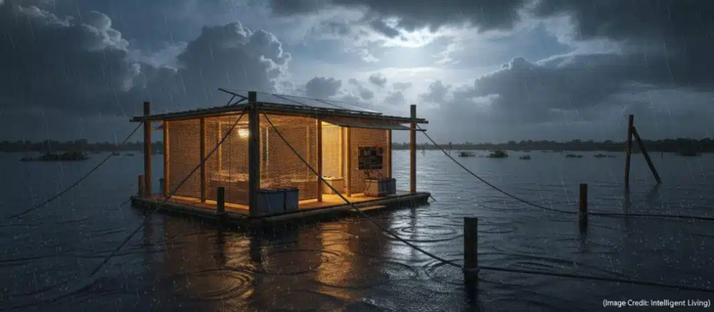 While floodwater once signalled an immediate retreat for coastal communities, today’s delta regions are viewing rising tides as a signal for radical redesign. Where great rivers finally meet the tide, flooding has become a constant pulse shaped by rising oceans, heavier rains, and land that is quietly sinking beneath our feet. So how do you build so life can continue when water arrives? Floating bamboo solar shelters can fill this practical gap.