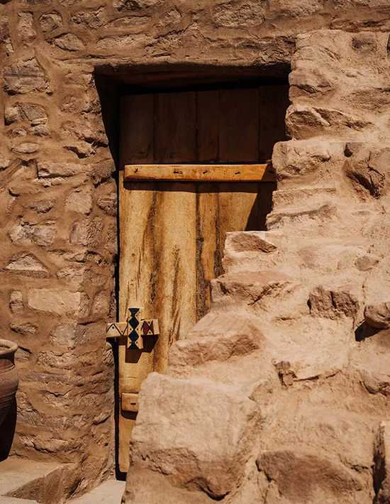 Every material and design choice ties the building back to its environment and historic construction methods. Stone was sourced from local quarries; the tamarisk wood beams and door frames are treated with natural oils.