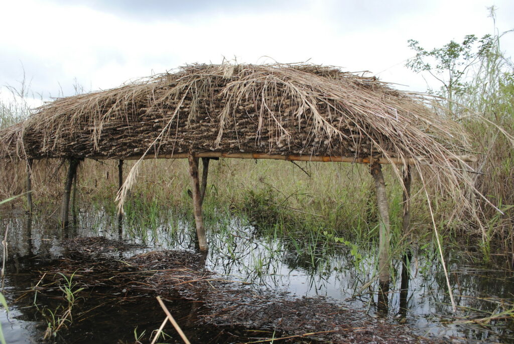 The Anam Development Company is on a site that includes an array of housing (ranging from compound housing around a central courtyard to vernacular wattle-and-daub construction and different housing prototypes), a compressed earth block factory, a borehole well for potable water, and earth ponds set among stands of trees, palms, bamboo, and abundant terrestrial and freshwater fauna. The surrounding landscape is a riverine area prone to seasonal flooding, which required the construction timeline to be organized in relation to the rainy season.